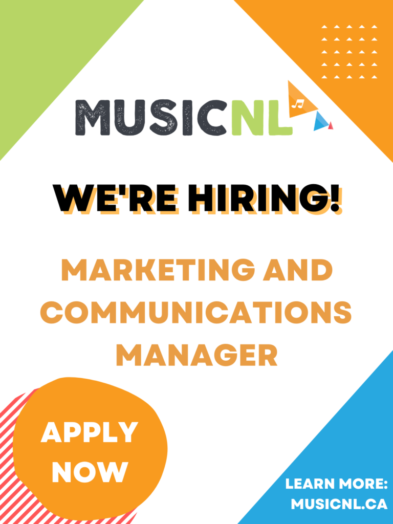 Click here to stay up to date on all of MusicNL’s latests news, opportunities and events! Do you have news for our newsletter? Email Abigail: comms @ musicnl.ca