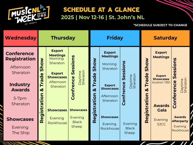 MusicNL is pleased to present the 2025 Export Program activities at the MusicNL Conference, and as part of MusicNL Week. The program will feature an array of high-quality showcases, industry conference sessions, the Awards Gala and a boutique Export Development program.