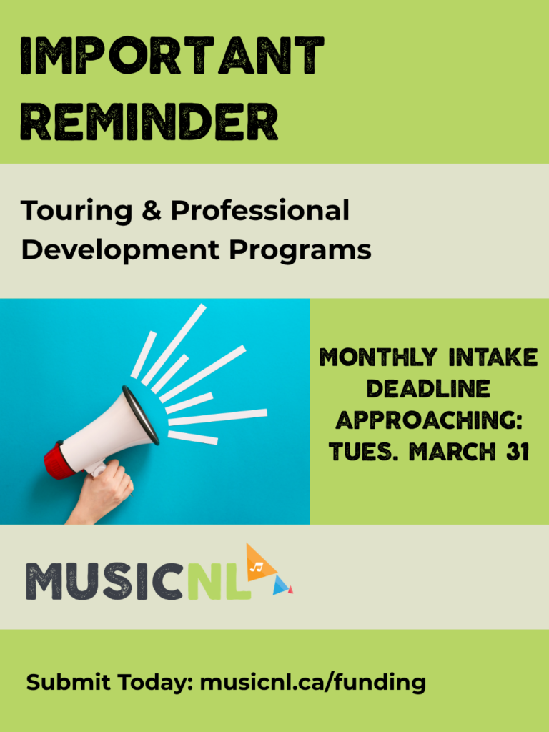 Submit your application today! Learn more about our funding programs here: musicnl.ca/funding.